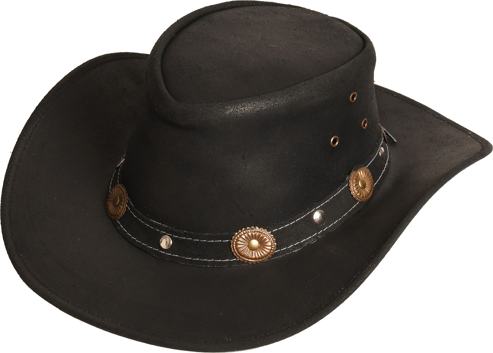 » Eigenschaften: formstabil, wetterfest, auffällige Conchos am Hutband
