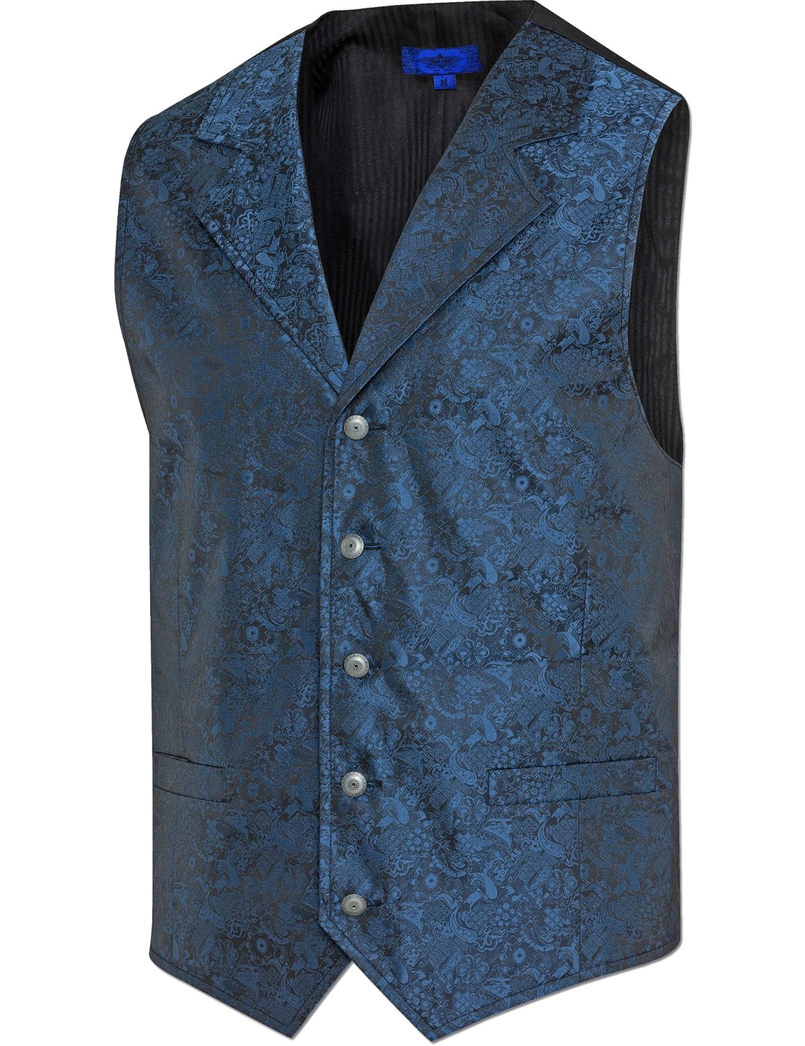 Jacquardweste mit zwei Eingrifftaschen und dekorativen Metallknöpfen.