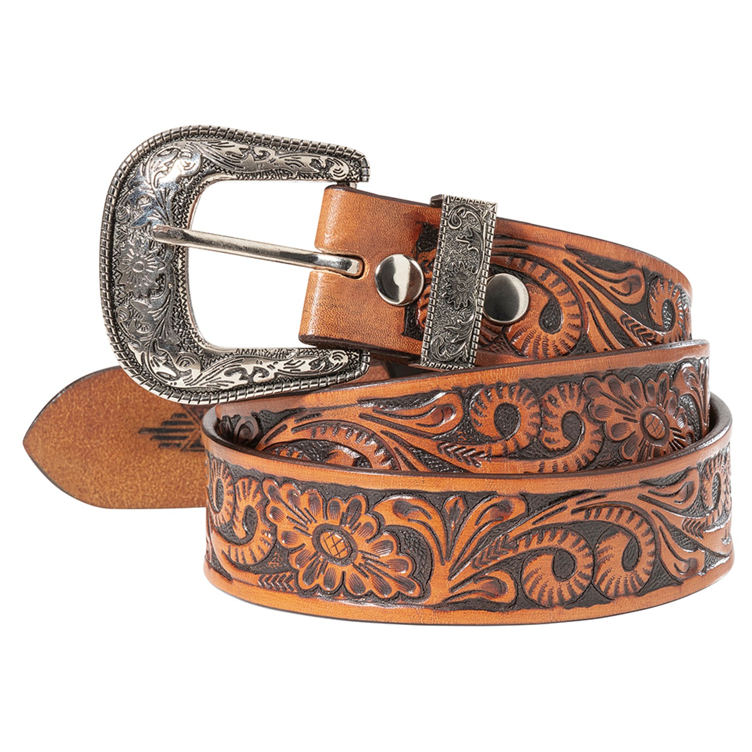Hochwertiger Westerngürtel aus Rindsleder von Hand punziert mit austauschbarer Gürtelschnalle.
