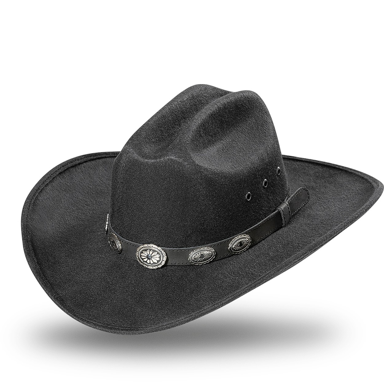 Mexikanischer Fauxfelt-Hut, leicht formbar. Hutband mit Conchos verziert. Elastisches Innenband. Der ideale Hut für Westernreiter.
